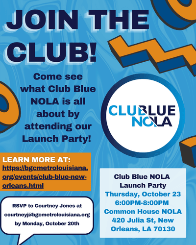 Club Blue NOLA is open to ALL who are interested. For more information on how you can become a Club Blue Ambassador, please contact ellie@bgcmetrolouisiana.org. We hope to meet you soon!